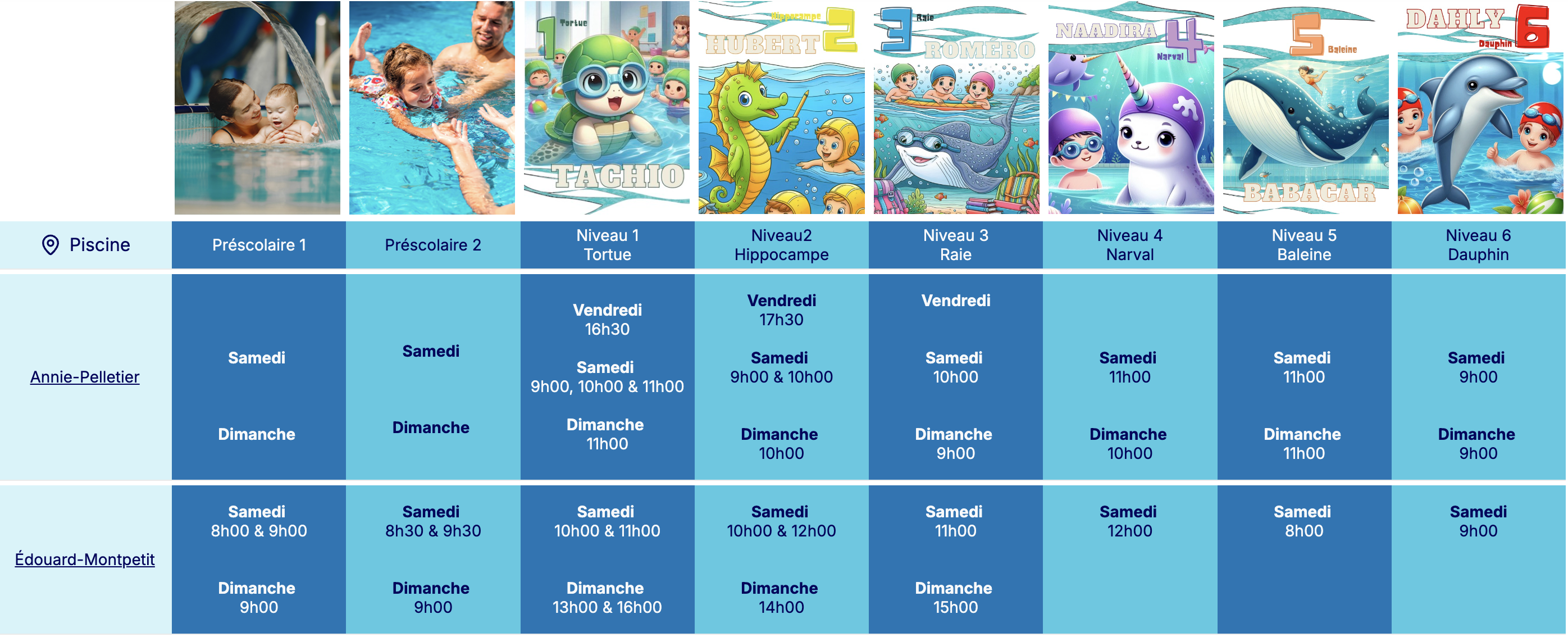 *(L'évaluation n'est pas nécessaire pour les cours parent/enfant)